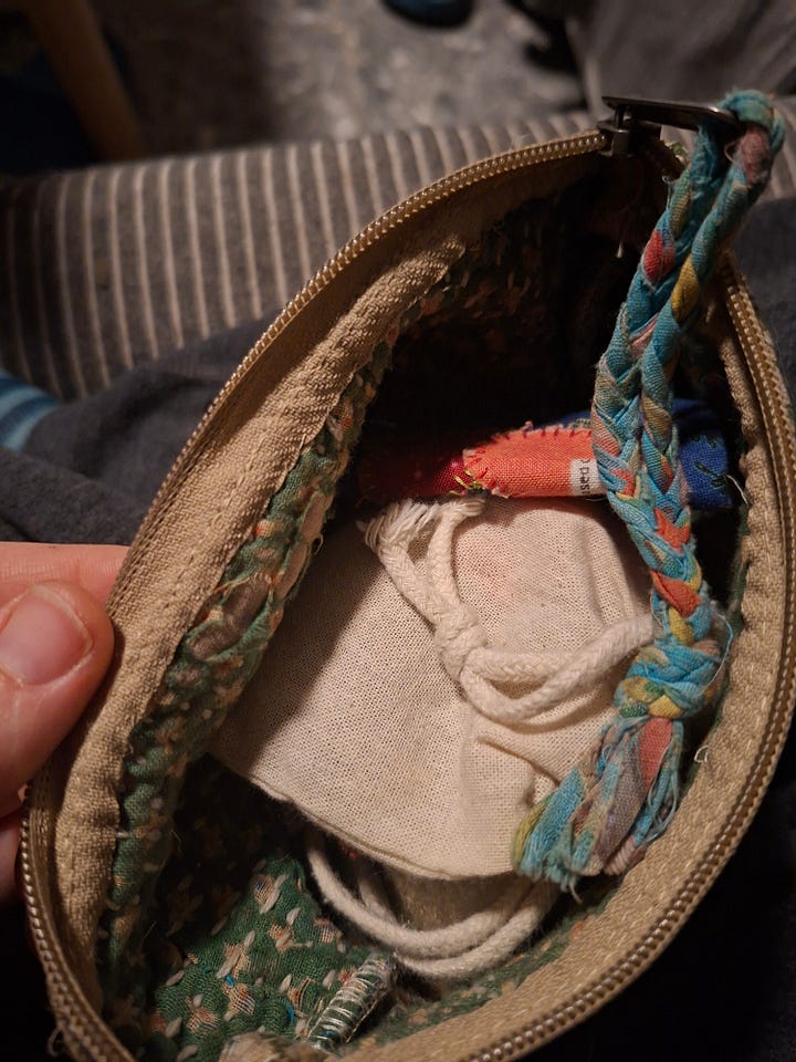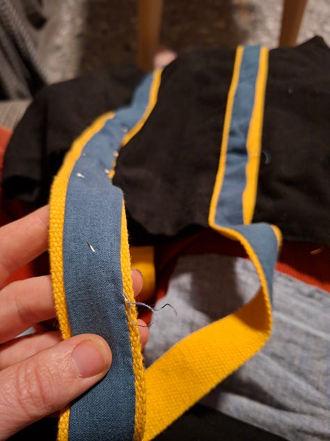 So, this week, this season, I’ve tried to support myself with easily accessible, straightforward repairs that don’t require planning or decision-making in the moment. As I mentioned last week, one of my tasks in preparation for this phase was to gather supplies in order to do the thinking ahead of time. I did this because, of course, it’s important to me to carry on with this project of caring for my things, but also because I know that caring for myself while caring for my things helps me… care for myself. That self-perpetuating cycle of care is part of the alchemy of mending that propels me through each winter day, week, and season (when I don’t crash out and take a nap with my pets instead - which is also important care!)